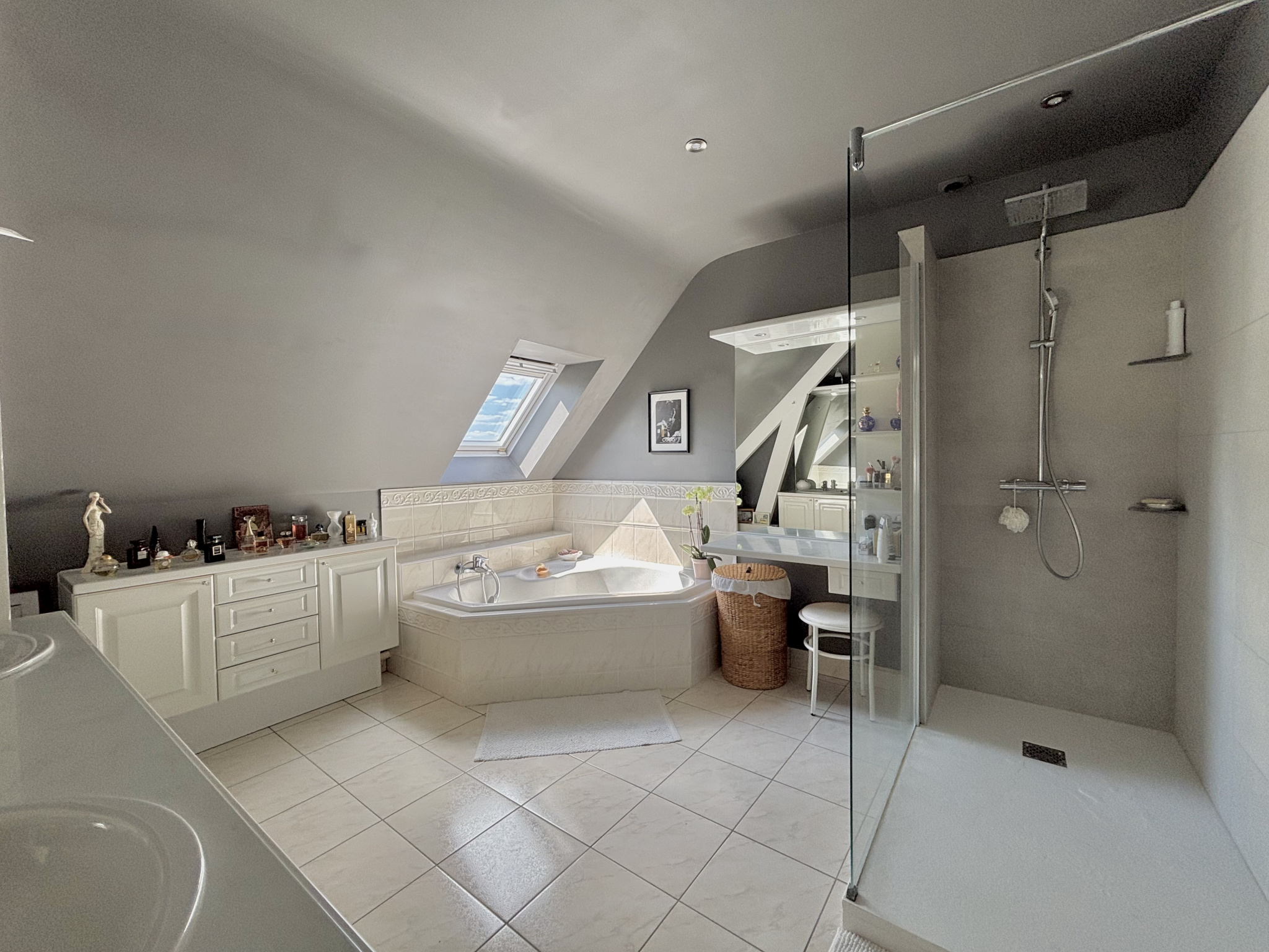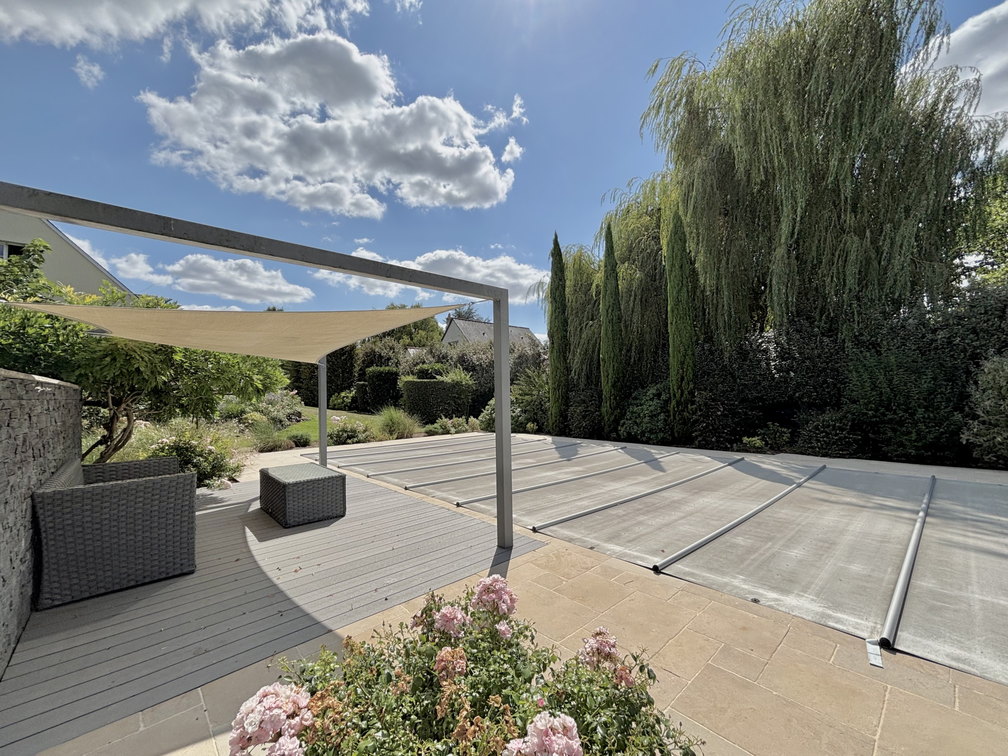 Située à Saint-Cyr-sur-Loire dans un environnement calme, cette Maison à l'intérieur contemporain séduira les familles en quête de confort, de fonctionnalité et de prestations de qualité. Dès l’entrée, vous serez charmé par une spacieuse pièce de vie lumineuse grâce à sa triple exposition, avec sa partie salle à manger donnant sur la cuisine semie-ouverte avec verrière entièrement aménagée et équipée, idéale pour partager des moments conviviaux en famille ou entre amis. La cheminée en verre vous apportera une chaleur douce et relaxante. Le rez-de-chaussée propose également une suite parentale élégante, comprenant un dressing sur mesure et une salle d’eau privative, offrant indépendance et confort. À l’étage, une mezzanine dessert cinq belles chambres, dont trois avec leur propre salle d’eau et dressing, parfait pour vos enfants, accueillir vos invités ou encore envisager des espaces bureau ou atelier tel qu'il se présente aujourd'hui. Côté annexes, la maison dispose d'une buanderie / arrière cuisine, d’un double garage attenant avec portes motorisées, d’un carport pour stationnement supplémentaire. À l’extérieur, vous profiterez d’une grande terrasse exposée idéalement, parfaite pour les repas d’été et les moments de détente,d' une belle piscine 5x10m au brome, ainsi que d'un grand abri de jardin pouvant devenir une cuisine extérieure. Le jardin est entièrement clôturé et sans vis-à-vis, l'arrosage est intégré et alimenté par un puits foré, le portail est motorisé. Aucun travaux à prévoir, maison très soigneusement entretenue, prête à emménager !